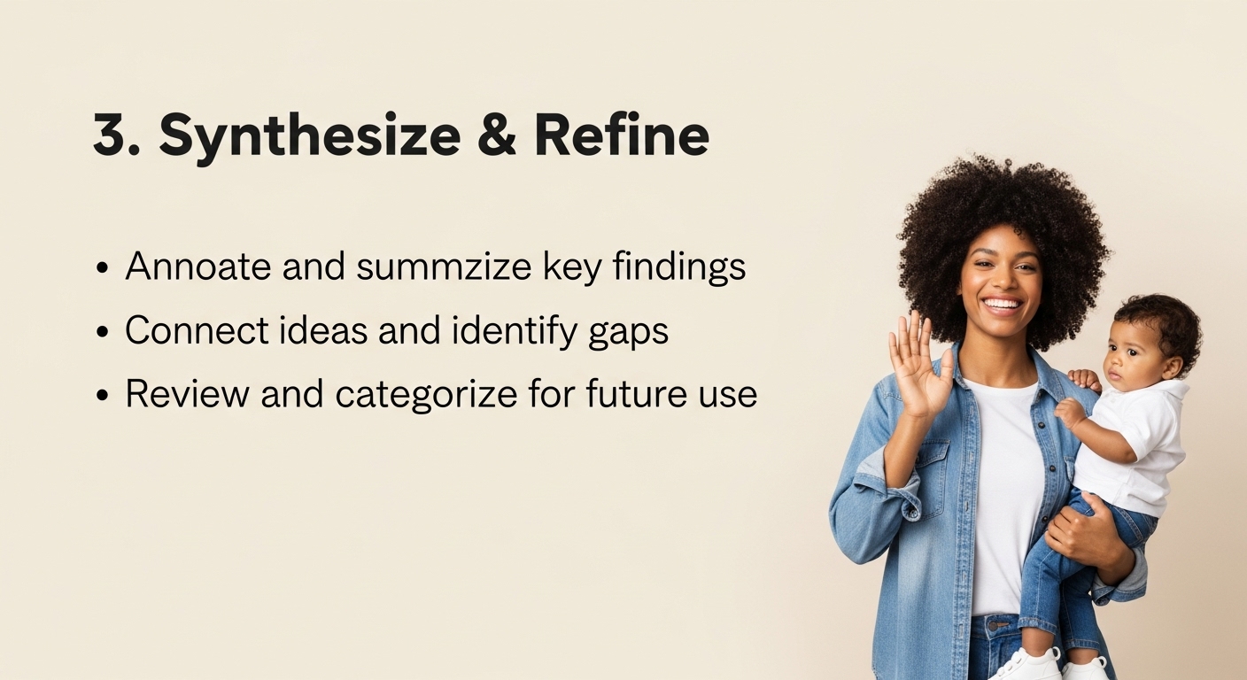 모든 자료를 다 읽으려 하기보다는, 초록과 결론 부분을 먼저 읽어 자신의 연구와의 관련성을 빠르게 판단합니다. 그리고 자료 수집은 '완성'이 아닌 '진행형'임을 기억하며, 연구의 진전에 따라 자료 목록을 끊임없이 업데이트하고 재평가하는 자세가 필요합니다. 이는 연구의 방향성을 잃지 않고 효율성을 유지하는 데 큰 도움이 됩니다.