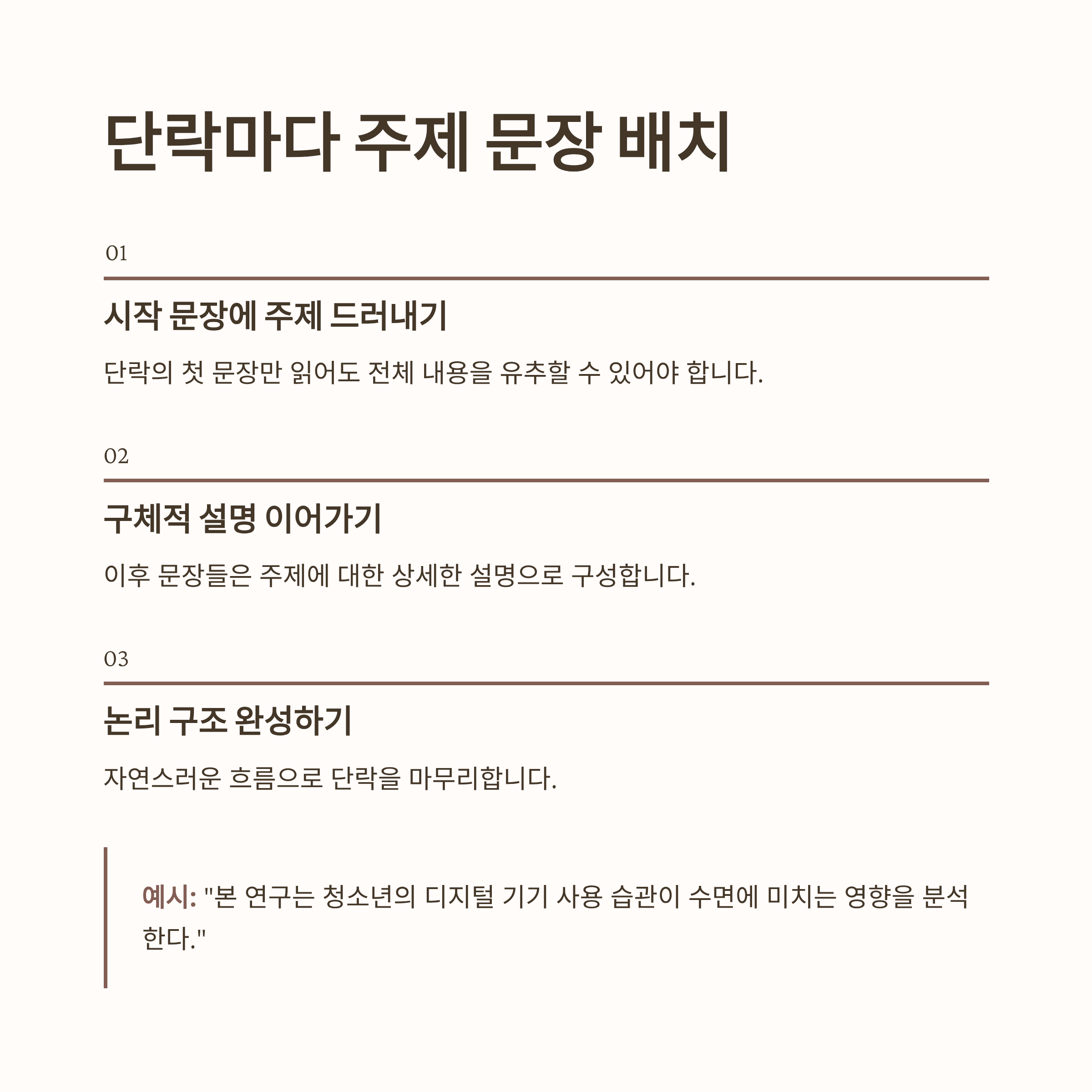 논문 잘 쓰는 사람들은 단락의 시작 문장에서 주제 전체를 드러냅니다.