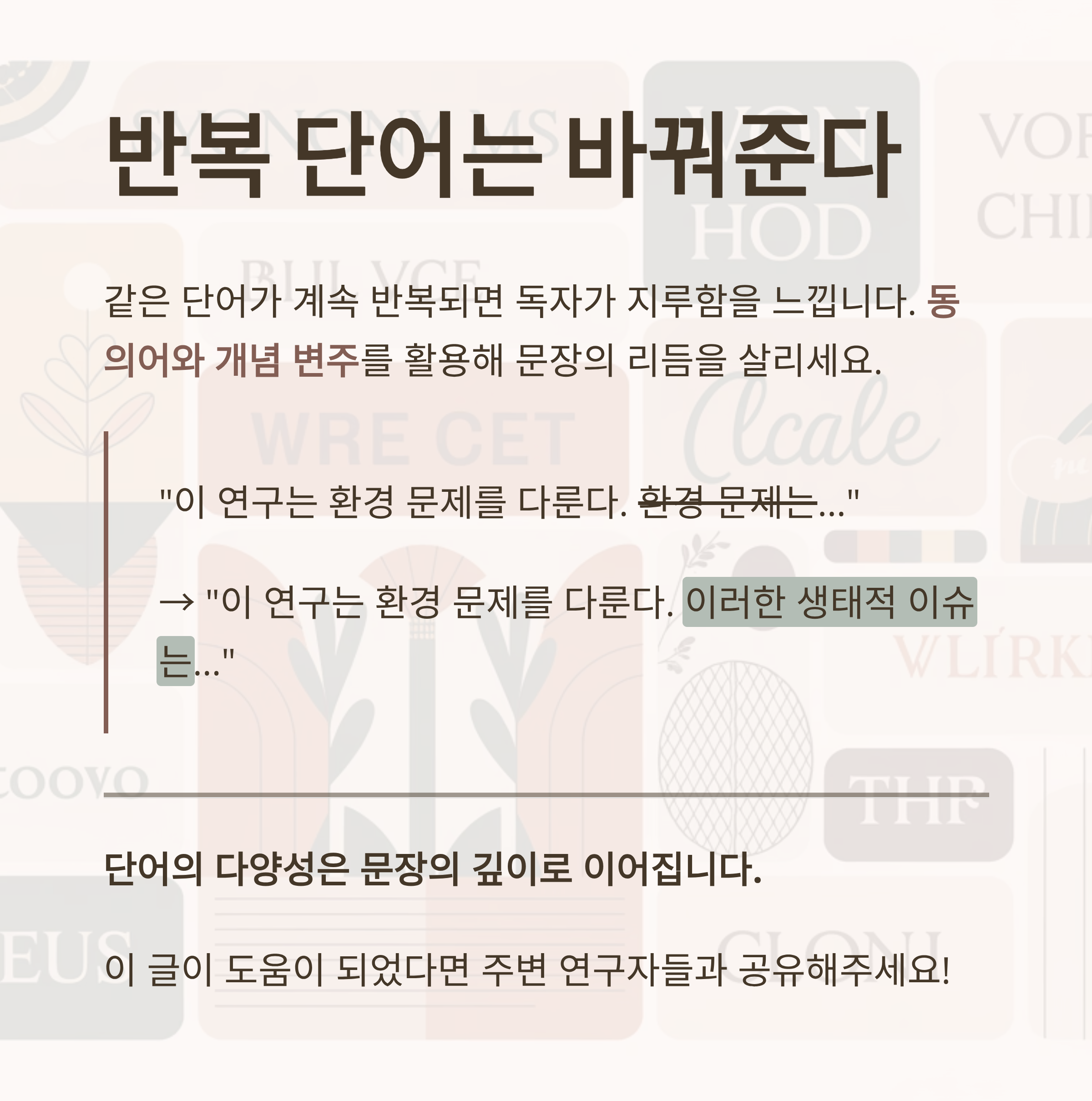 동의어, 개념 변주를 활용해 문장의 리듬과 표현력을 살려보세요.