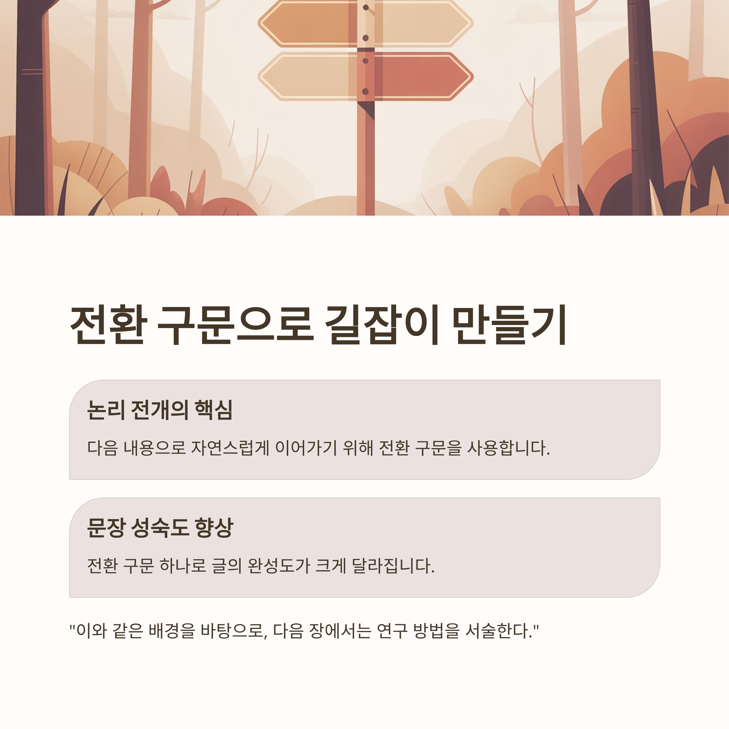 전환 구문 하나로 문장의 성숙도가 달라집니다.