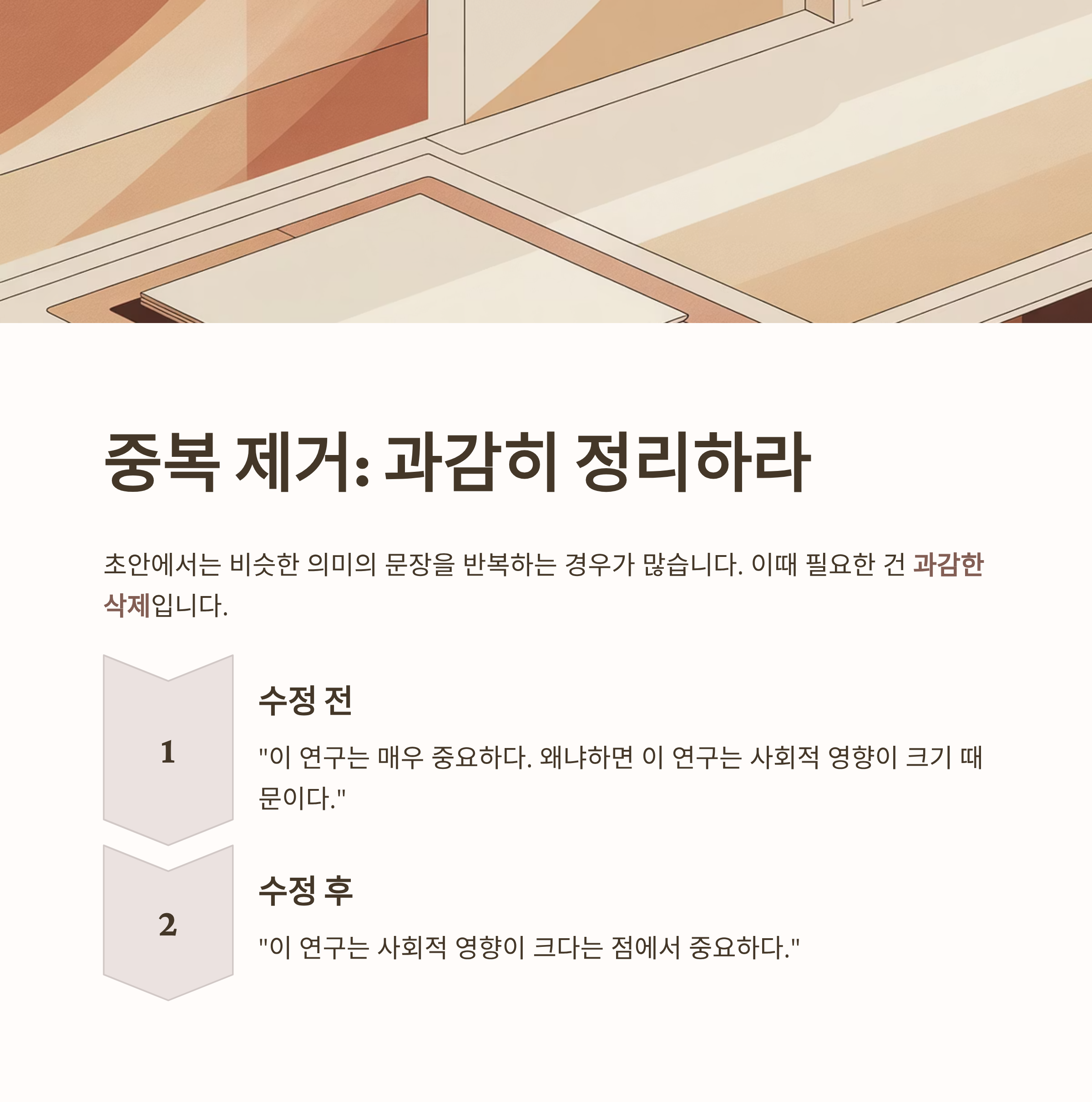 중복을 줄이면 독자의 집중도는 올라가고 문장은 깔끔해집니다.