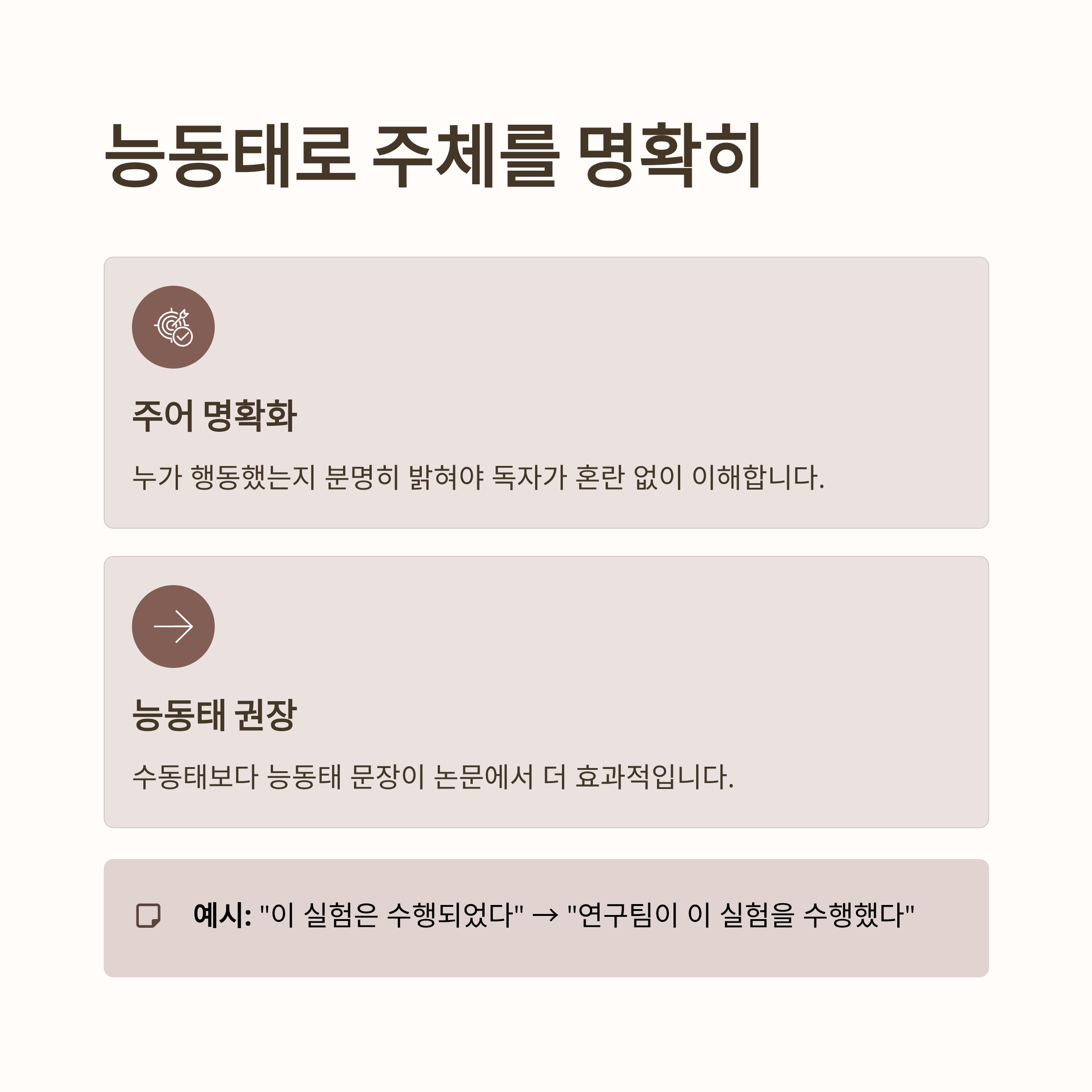 주어와 동작이 명확해야 독자가 혼란 없이 이해할 수 있기 때문입니다.