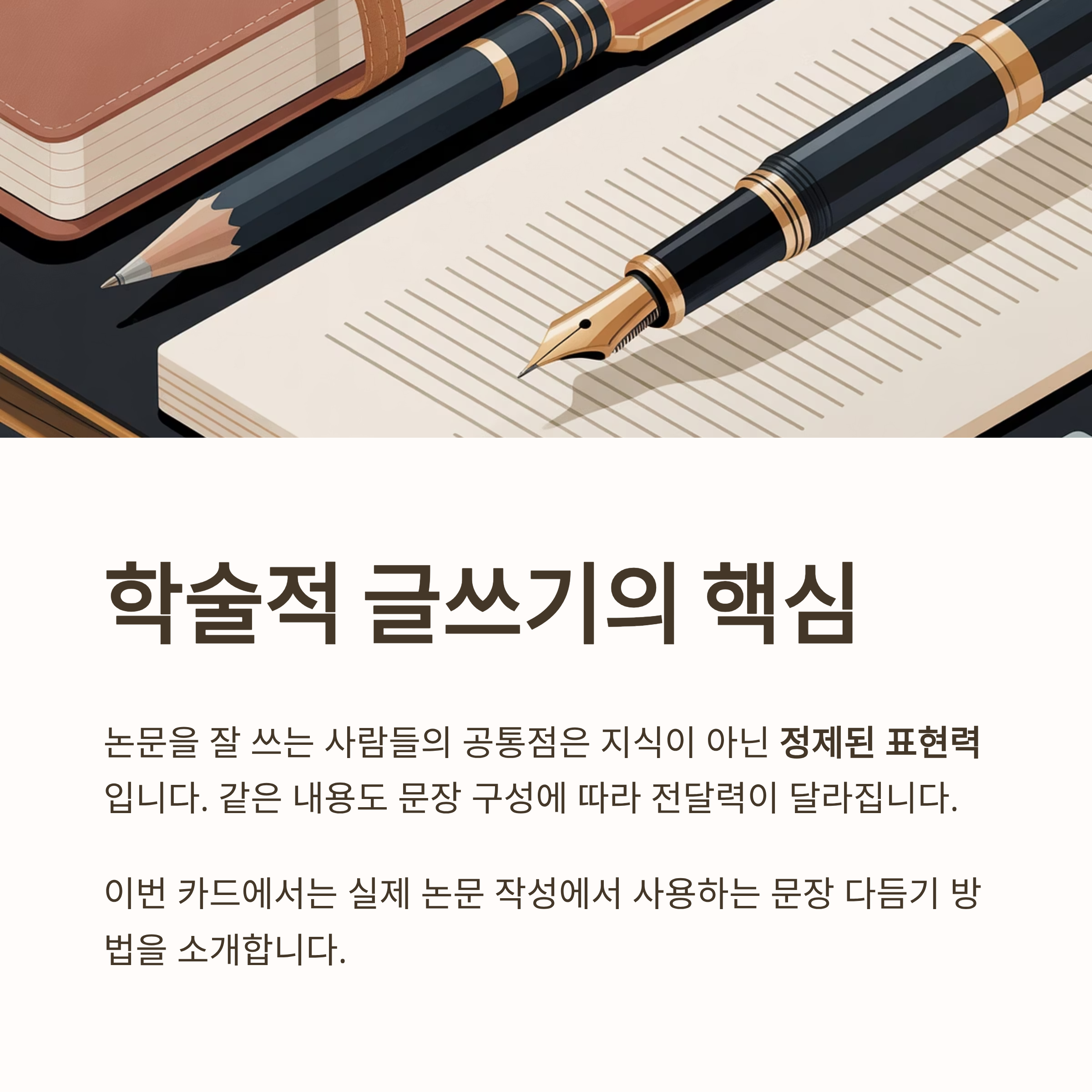 논문을 잘 쓰는 사람들의 공통점은 단순히 지식을 많이 알고 있는 것이 아닙니다. 그들은 문장을 다듬는 능력, 즉 "정제된 표현력"을 갖추고 있습니다. 같은 내용이라도 문장을 어떻게 구성하느냐에 따라 전달력과 설득력이 크게 달라지기 때문인데요. 이번 글에서는 실제 논문 작성을 하면서 자주 쓰이는 문장 다듬기 방법을 중심으로, 문장을 어떻게 정리하면 학술적으로 더 설득력 있고 명확한 글이 되는지 알려드립니다.