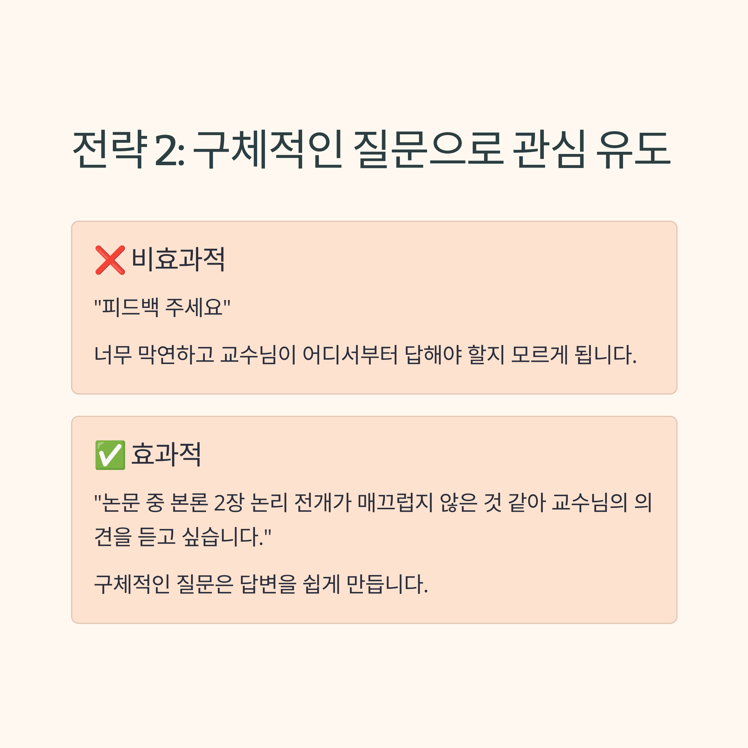 이렇게 질문을 넣으면, 교수님 입장에서도 구체적으로 답하기가 쉬워집니다.