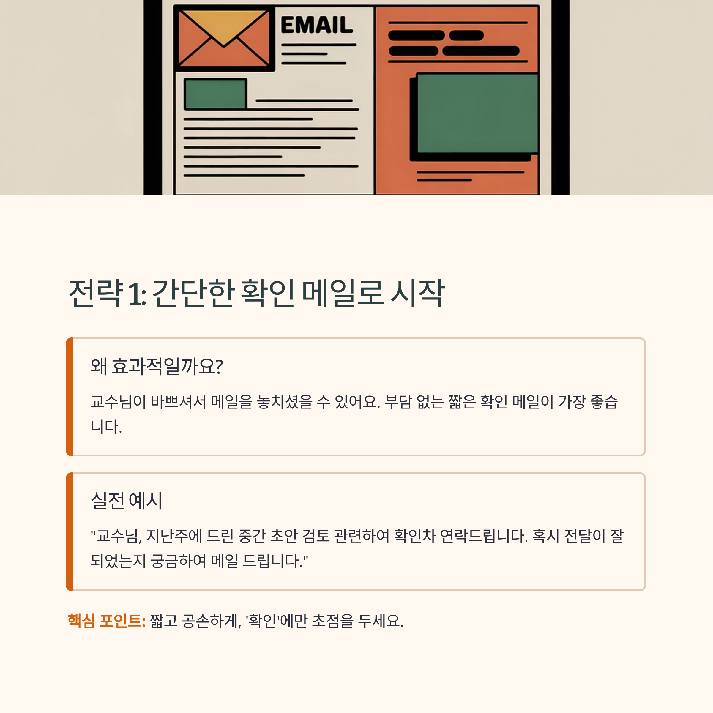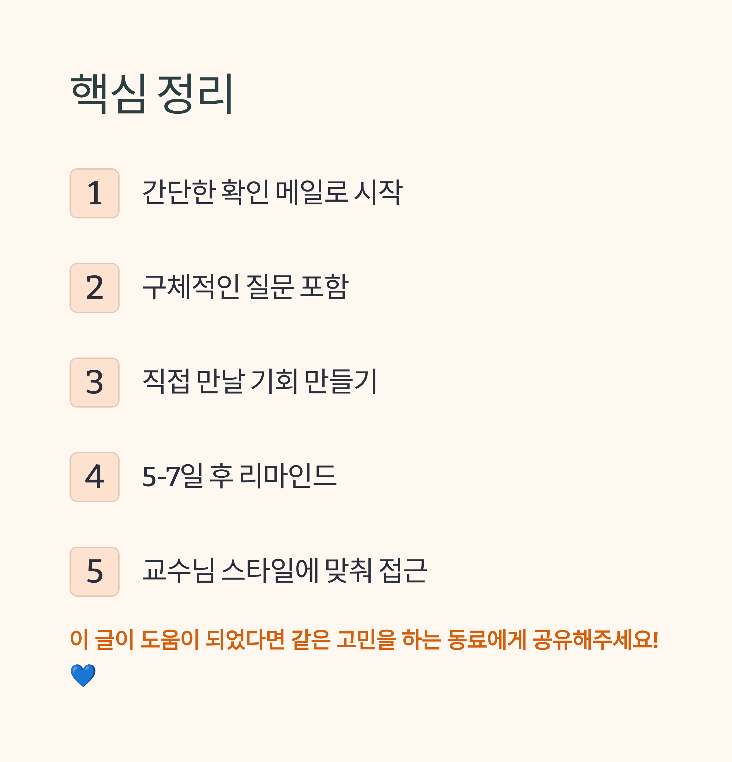 교수님 일정에 맞춰 사전 약속을 요청하면, 직접 설명드릴 기회도 생기고 빠른 피드백도 받을 수 있어요.