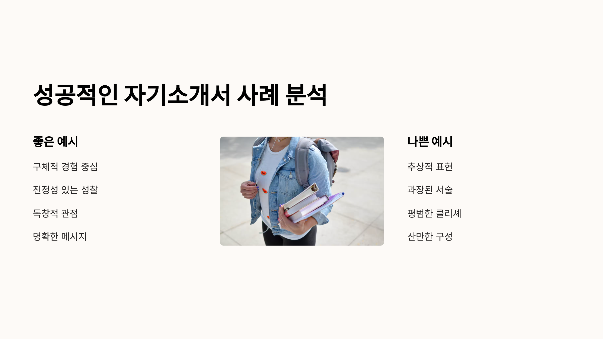 내가 생각했을 때, 가장 중요한 건 '솔직함'이에요. 꾸미거나 남을 따라 하는 글보다, 나만의 경험과 느낌을 담아야 글이 살아있고 읽는 사람에게도 진심이 전해지거든요. 자기소개서는 나를 소개하는 첫 번째 무대니까요 😊