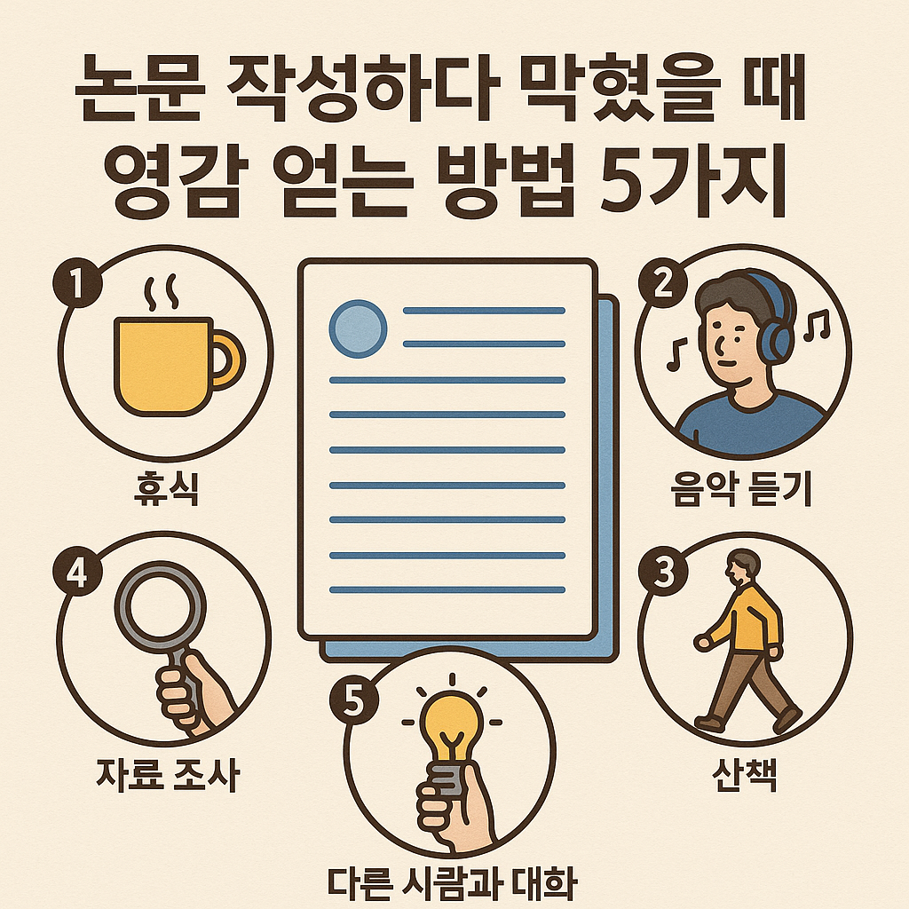 논문 쓰다 막히는 건 누구나 겪는 과정이에요. 중요한 건 그 순간을 두려워하지 않고, 오히려 아이디어를 키울 기회로 삼는 거죠. 오늘 소개한 다섯 가지 방법 중 하나라도 실천해 보면, 머릿속이 한결 가벼워질 겁니다.