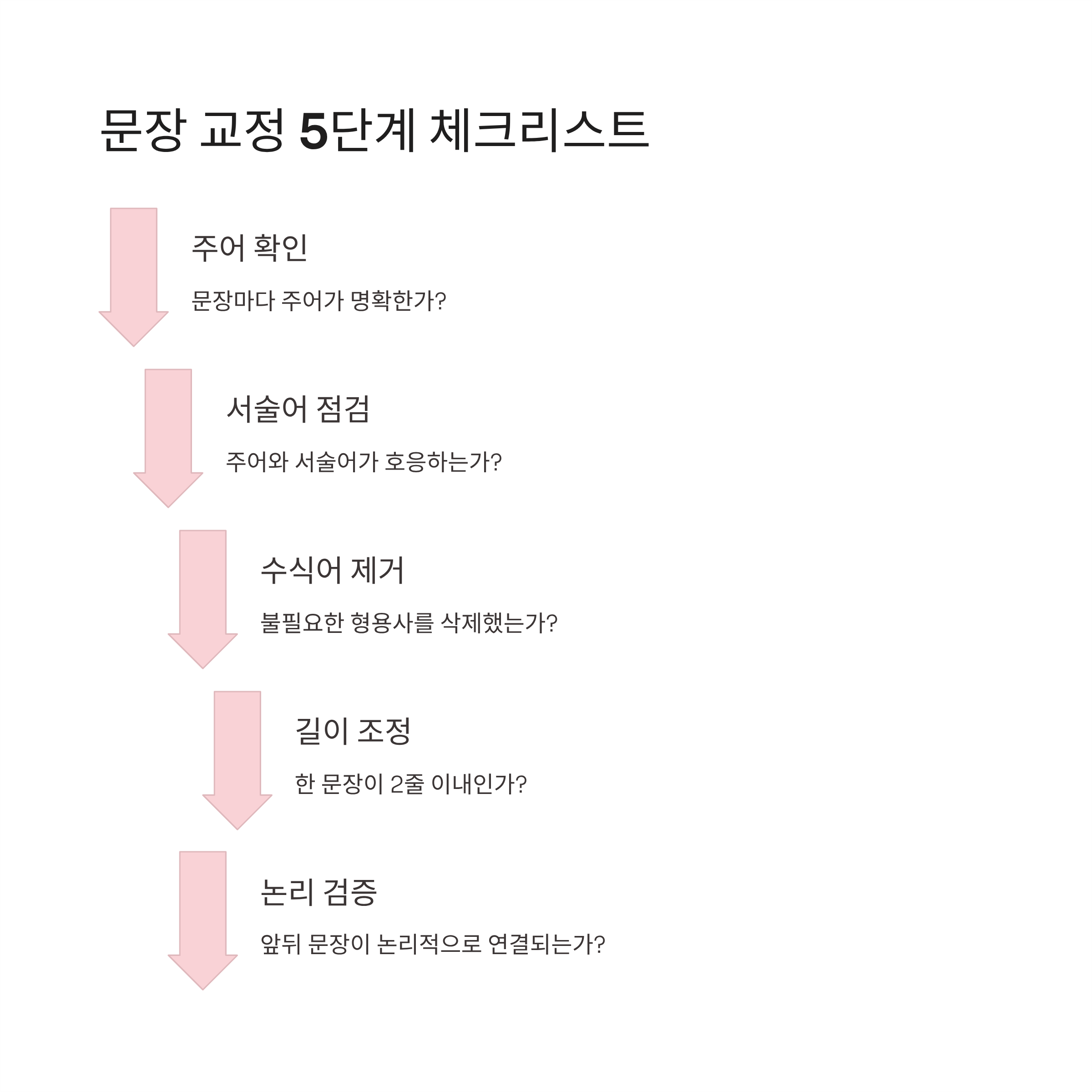 ๋ ๋ฒ์งธ ํ์ ๋ฌธ์ฅ ๋จ์๋ก ๋ฌธ๋ฒ ๊ฒ์ฌ ๋๊ตฌ๋ฅผ ํ์ฉํ๋ ๊ฑฐ์์. Grammarly, ํํ๊ณ ๋ง์ถค๋ฒ ๊ฒ์ฌ๊ธฐ, KISS ํ๊ตญ์ด ๋ฌธ๋ฒ ๊ฒ์ฌ๊ธฐ ๋ฑ์ ํตํด ๋ฐ๋ณต ํํ, ์กฐ์ฌ ์ค๋ฅ, ์ฃผ์ด-์์ ์ด ๋ถ์ผ์น๋ฅผ ์์ฝ๊ฒ ๊ต์ ํ ์ ์์ด์. ํ์ง๋ง ๋๊ตฌ๋ ๋ณด์กฐ ์๋จ์ผ ๋ฟ, ์ต์ข ํ๋จ์ ์ค์ค๋ก ๋ด๋ ค์ผ ํด์.