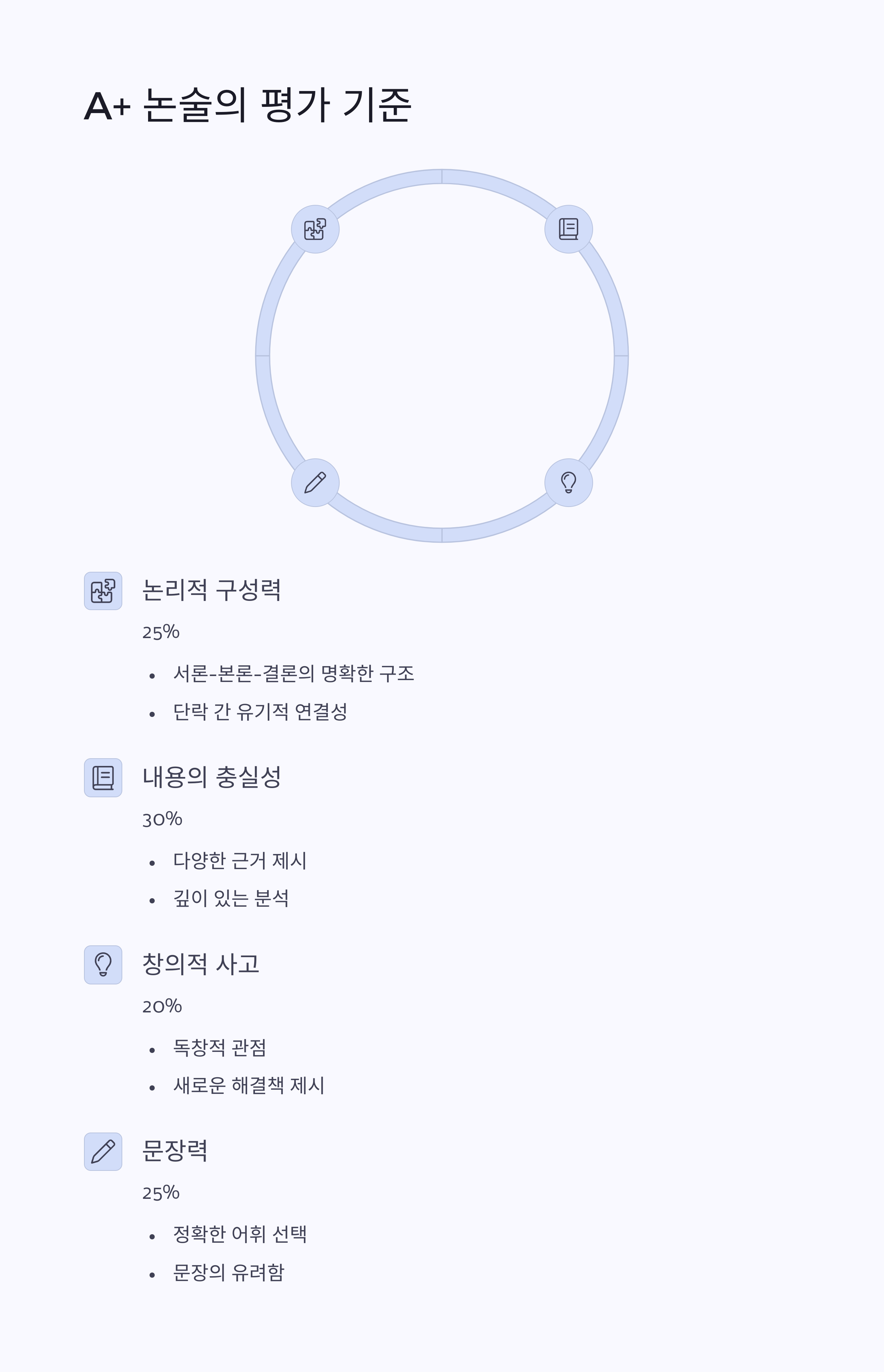 | 논리력 | 의견 전개와 근거 연결 능력 평가 |